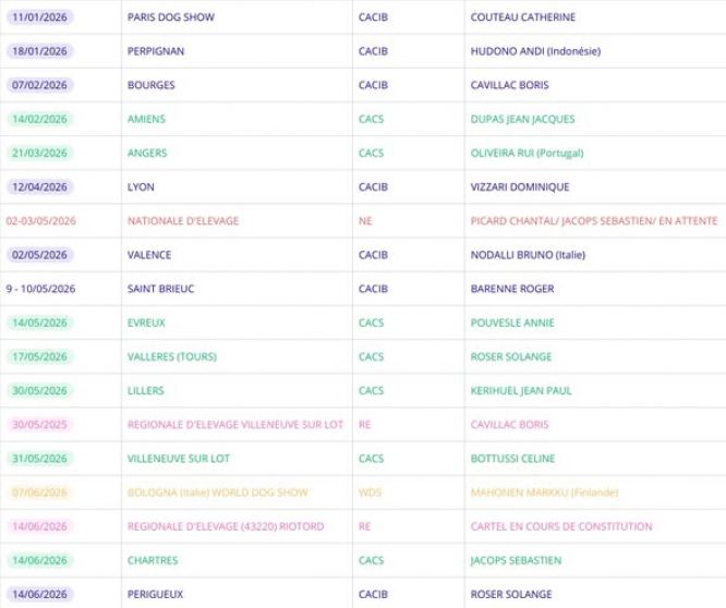 Nous avons fait de notre mieux pour doter toutes les zones de spéciales de race, et varier les juges (en fonction des disponibilités, et des cartels.)